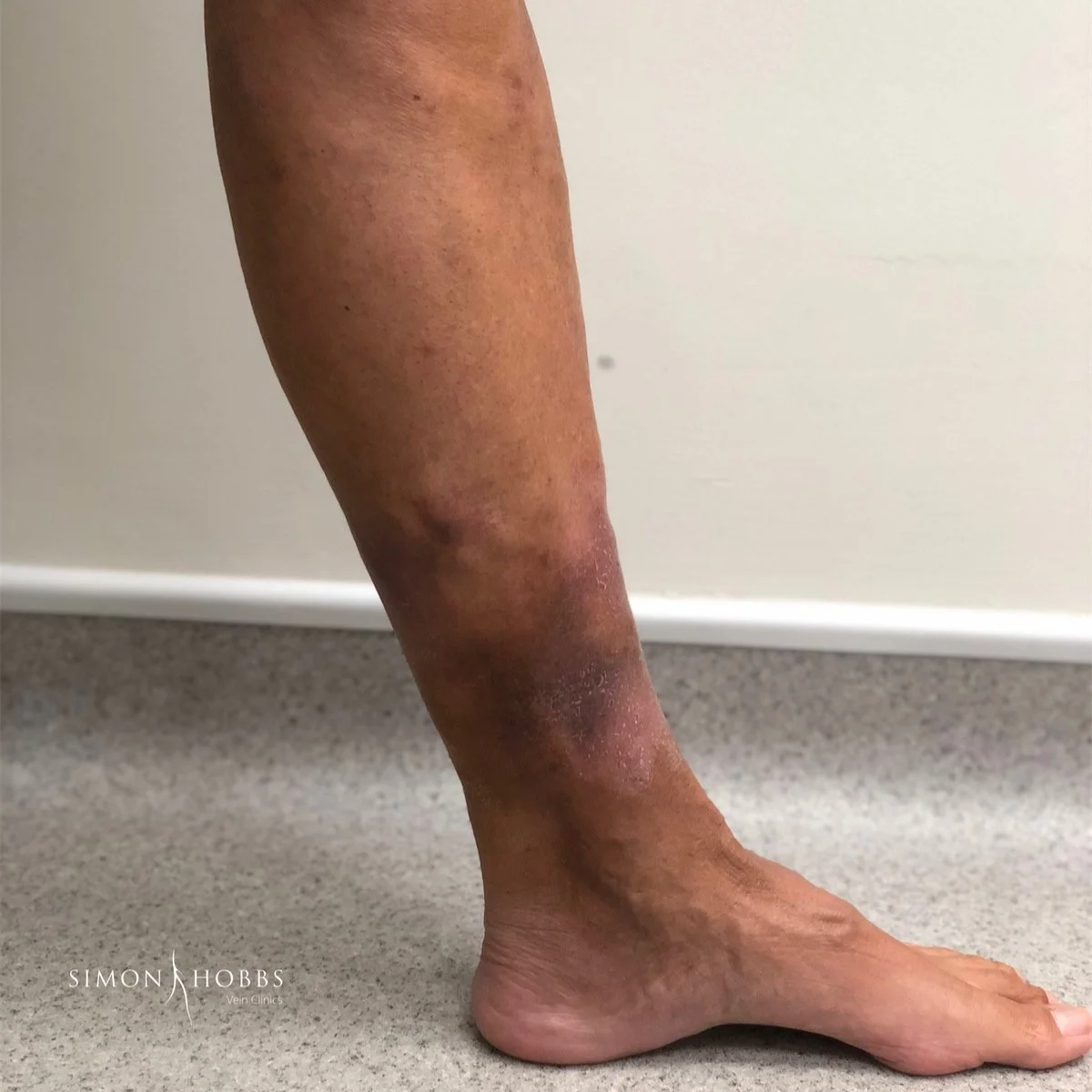 In addition to being sore and uncomfortable, venous eczema can leave visible scarring on the leg. Scratching the area may also introduce infection into the leg requiring antibiotics and if left untreated there is a risk of it developing into a venous ulcer.